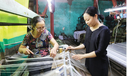 Từ đây những người nghệ nhân tiến hành dệt thành lụa. Ngày xưa, với chiếc máy dệt kiểu cũ ta chỉ có thể dệt được các loại lụa trơn. Sau này khoa học kỹ thuật phát triển thì vải lụa được thêm nhiều họa tiết, hóa văn để nâng cao chất lượng cũng như thẩm mỹ của vải dệt lụa tơ tằm.